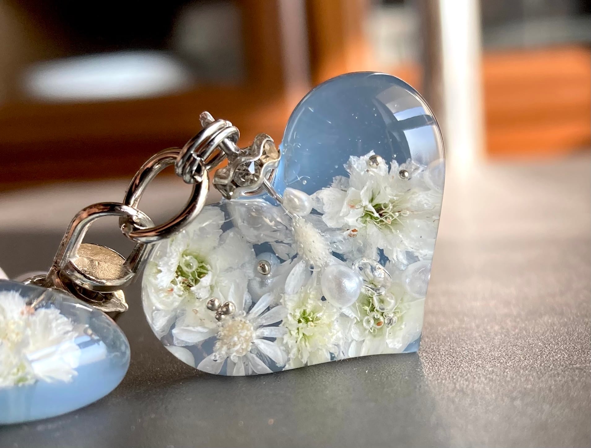 ぷっくりハートのフラワーバッグチャーム